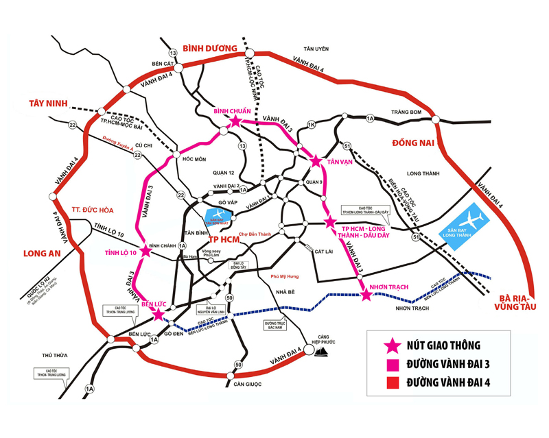 Trục phát triển công nghiệp – đô thị – dịch vụ mới của vùng TP.HCM mở rộng.
